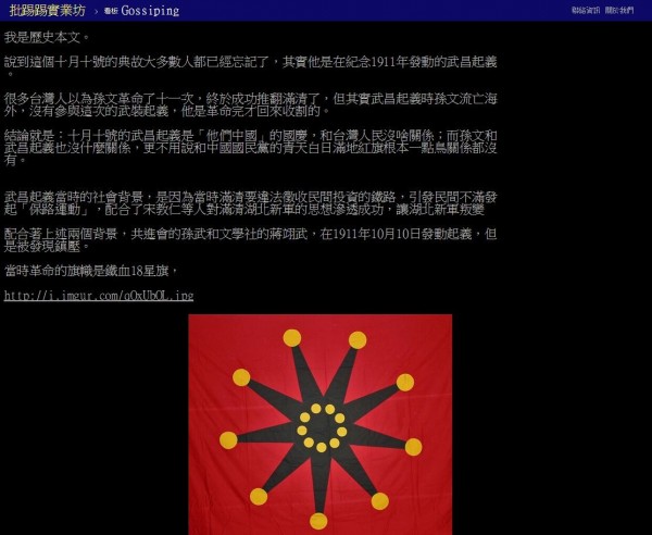 〔即時新聞/綜合報導〕今天是一年一度的雙十國慶,有人昨天在批踢踢發問「國慶日在