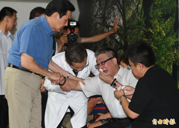 八仙塵爆傷患朱俐的父親朱邦宇(右二下跪者)痛批,當初總統馬英九