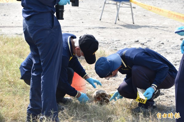 往現場查看,初步研判應是人的頭顱。(記者蘇福男攝)