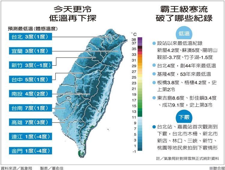 今天低溫再下探1度 霸王級寒流破了那些記錄!