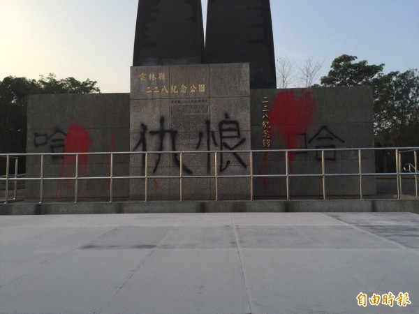 〔記者廖淑玲/雲林報導〕雲林古坑228紀念公園遭潑漆塗鴉,由於今天是228和平紀念日