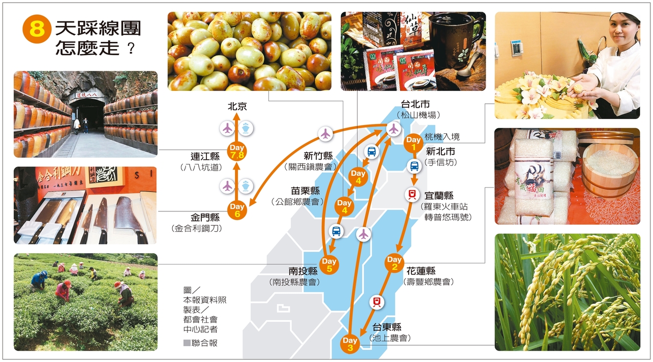 以參訪農特產品為主;踩線團行程鎖定藍營八縣市,對綠營執政縣市「只路過,不消費」