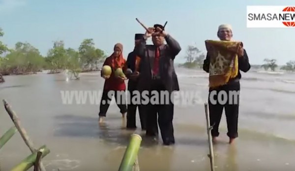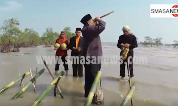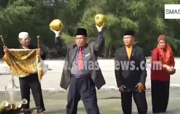 綜合外媒報導,「巫師王」伊布拉辛自稱為了保護馬來西亞不被北韓核武攻擊,近日他穿著西裝且帶了3名助理與眾多法器到海邊作法,儀式期間一行人念念有詞,伊布拉辛還使用一雙棍子當作雙筒望遠鏡,最後更把兩顆椰子丟進海裡結束儀式。