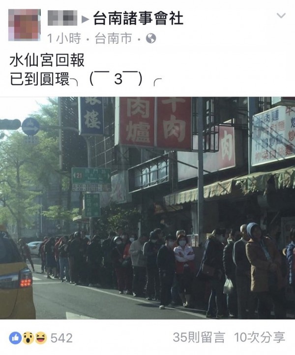 有網友在臉書台南諸事會社社團po文指排隊買春捲的人潮已排到西門圓環了!