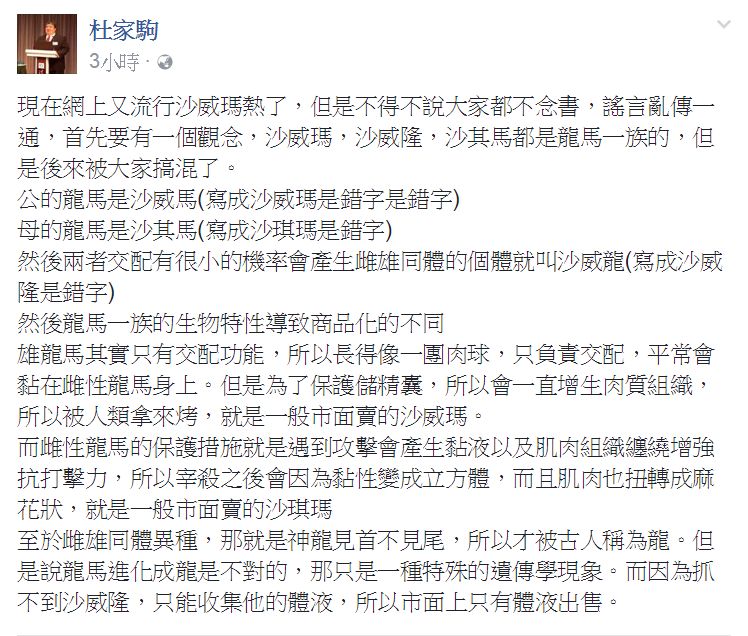 另外,律師杜家駒也在臉書表示,「沙威瑪,沙威隆,沙其馬都是龍馬一族的,是後來
