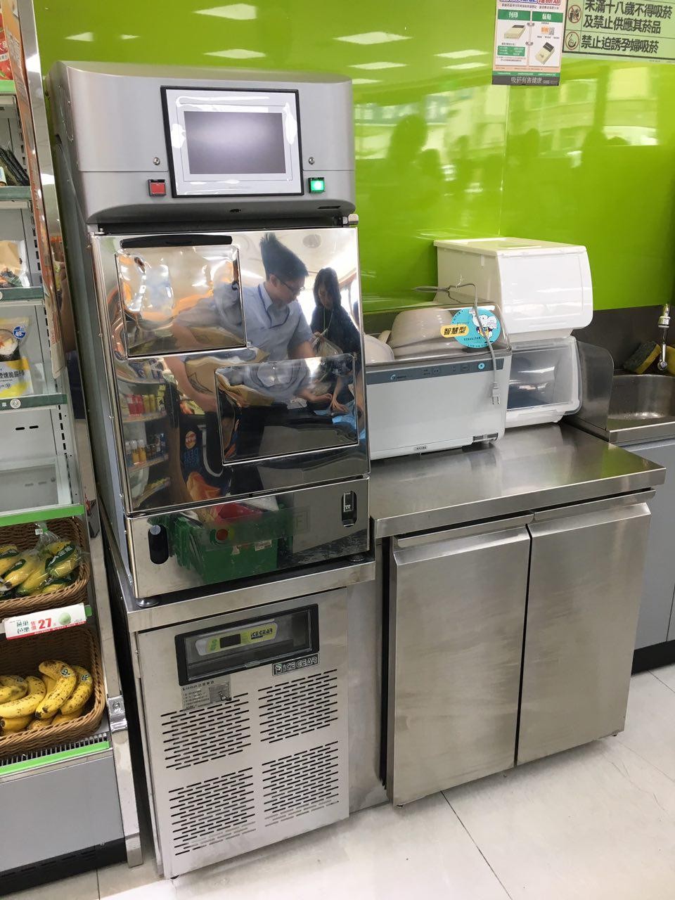 網友19日在PTT發文表示,「剛剛買便當看到全家櫃臺旁出現新的機器,旁邊還有碗,不