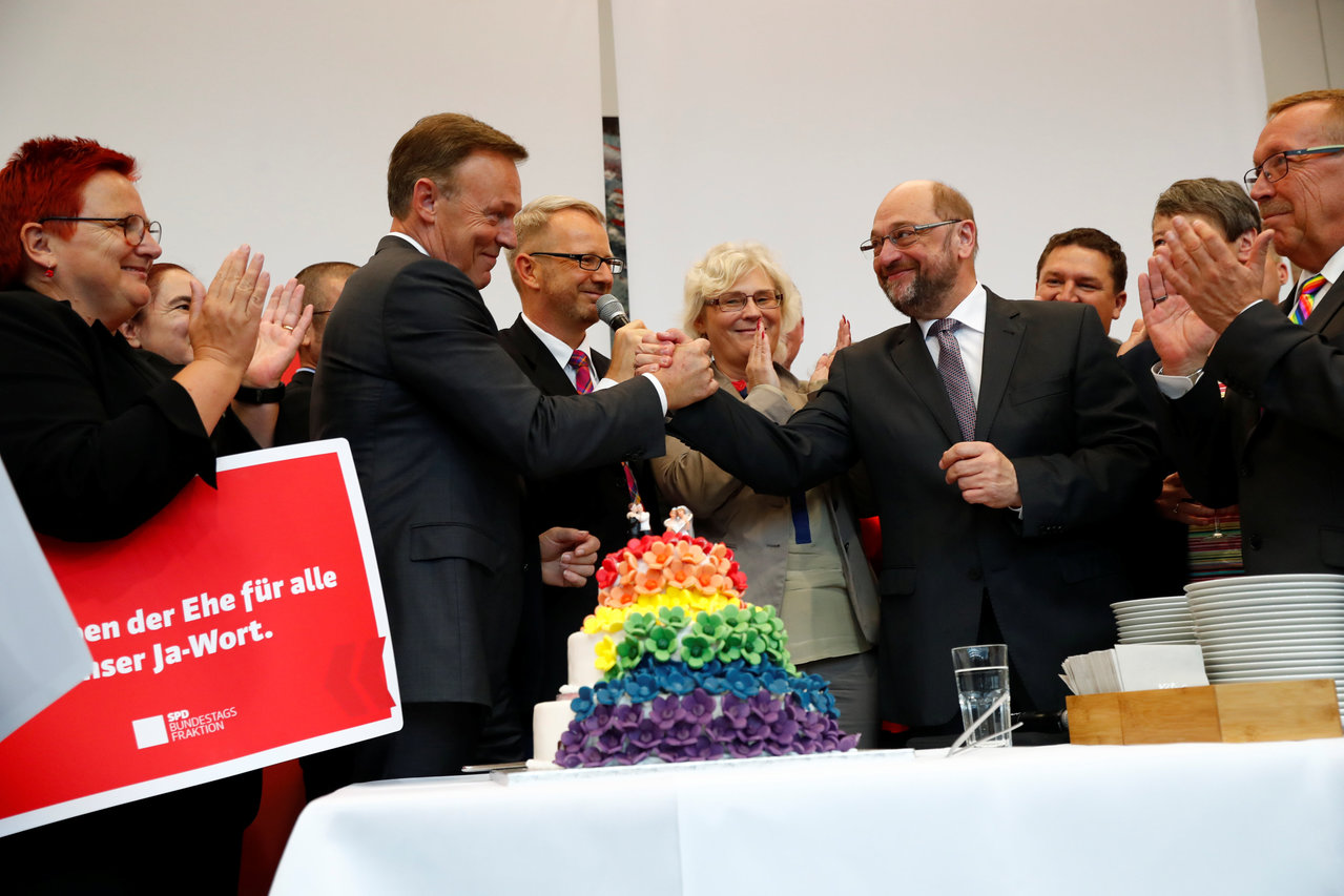 六月時,社民黨選擇在國會本會期結束前違背聯合政府契約,力推婚姻平權法案。未料,這項成就仍被梅克爾收割。 圖/路透社