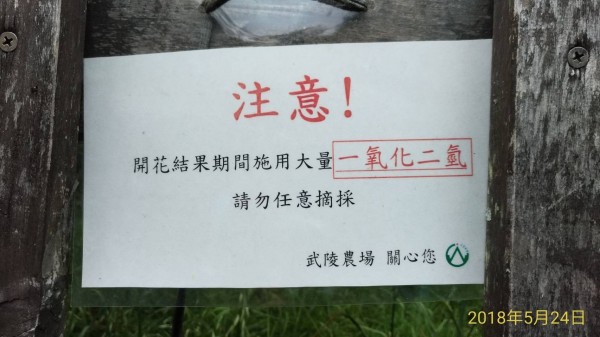 最近乾脆貼出告示「開花結果期間施用大量一氧化二氫,請勿任意摘採」!