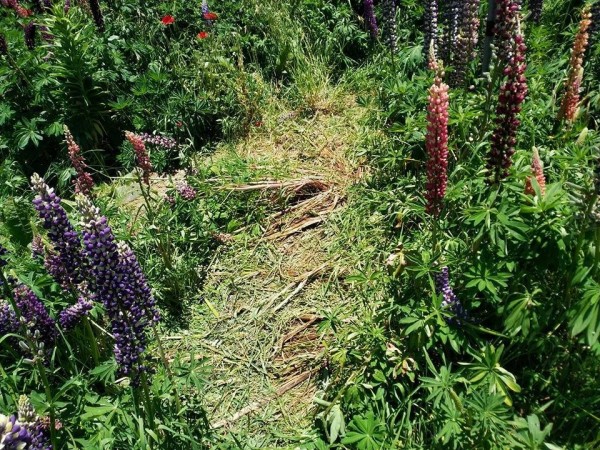 福壽山農場的魯冰花園被遊客踩出大片光禿。(福壽山農場提供)