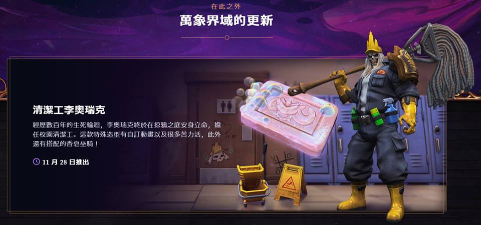 將在11月28日登場的李奧瑞克「清潔工」造型。