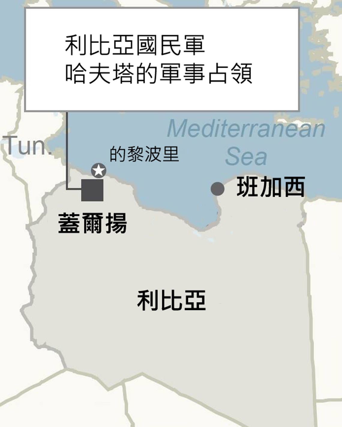 Hafta)——自4月4日開始遂以「肅清聖戰士」為名發兵西進,試圖透過突襲,攻佔首都的黎波里(Tripoli)。目前哈夫塔將軍的部隊,正與聯合國支持的中央過渡政權「民族團結政府」在首都西郊爆發激戰——雙方不僅各自動員上千兵力,彼此甚至還出動空軍互轟;儘管聯合國、美國與俄羅斯都出面調停,但緊張的全面開戰卻一觸即發。