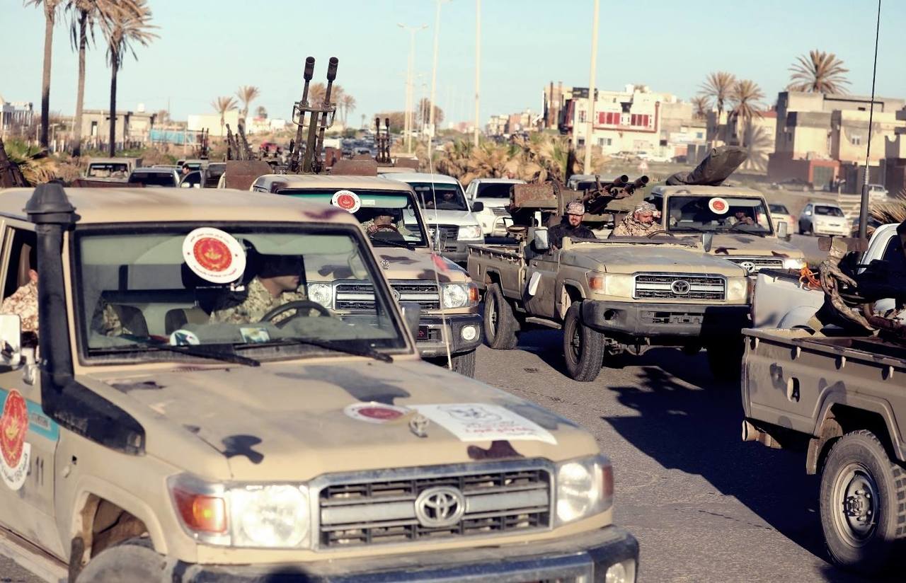 4月4日動手後,哈夫塔的部隊主要分為兩路進擊:由東邊大本營托布魯克出發的部隊,主要沿海路往西進;另一支提前行動,並於2月份攻下南方「莎拉拉油田」(El-Sharara)的部隊,則穿越薩哈拉沙漠直接北上侵攻的黎波里,其先導的裝甲車隊,也在4日攻下了首都西南90公里的要塞城鎮蓋爾揚(Gharyan),並於周末在的黎波里西郊50公里處,與GNA的民兵聯合軍發生激戰。