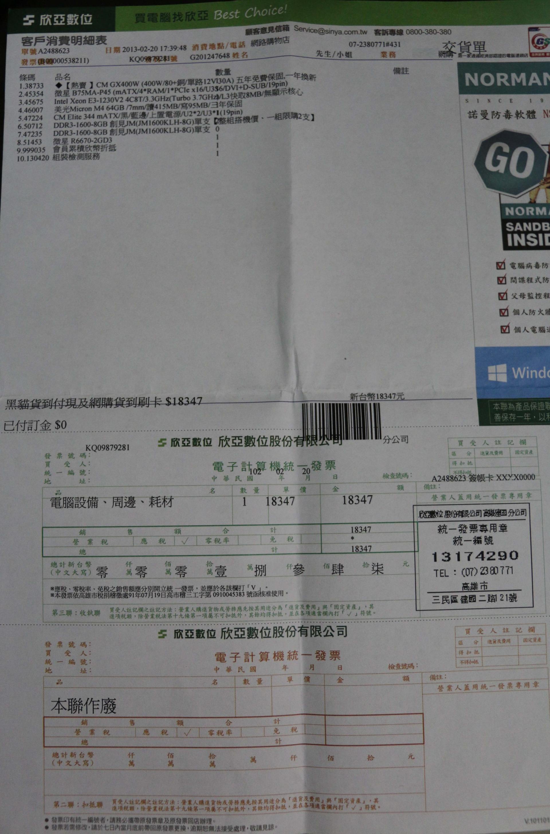 整台買會附上"購買發票"跟"主機板盒跟配件"