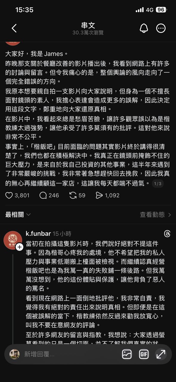 事實就是什麼都沒改變,本質上市場不能接受的東西,不會因為什麼影片就改變。覺得好險楷跟James有一起出來講,不然如果之後楷自己出來講,現在風向一定不是挺James顆顆