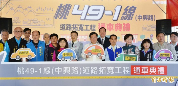 桃園市長鄭文燦(中)主持中興路完工通車典禮。(記者周敏鴻攝)