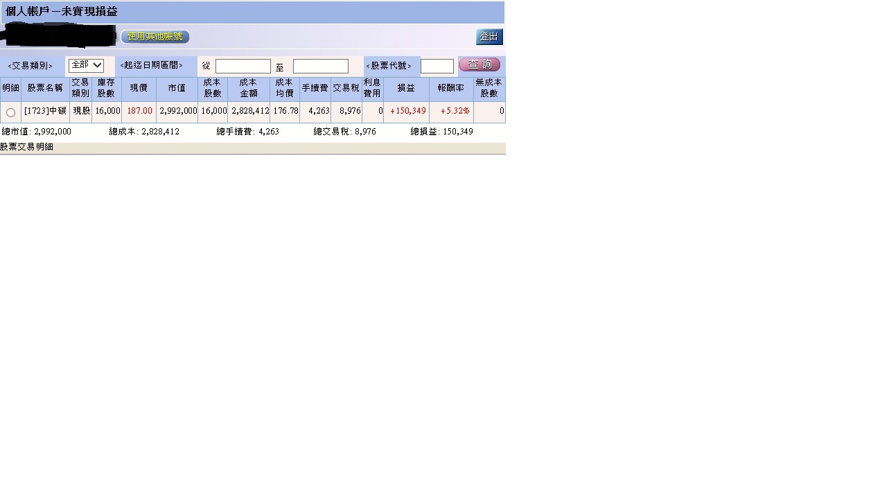 所以今天算出脫三分之一, 找機會除息前全出囉,