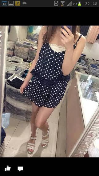3. 細肩圓點點 下襬蕾絲連身短褲