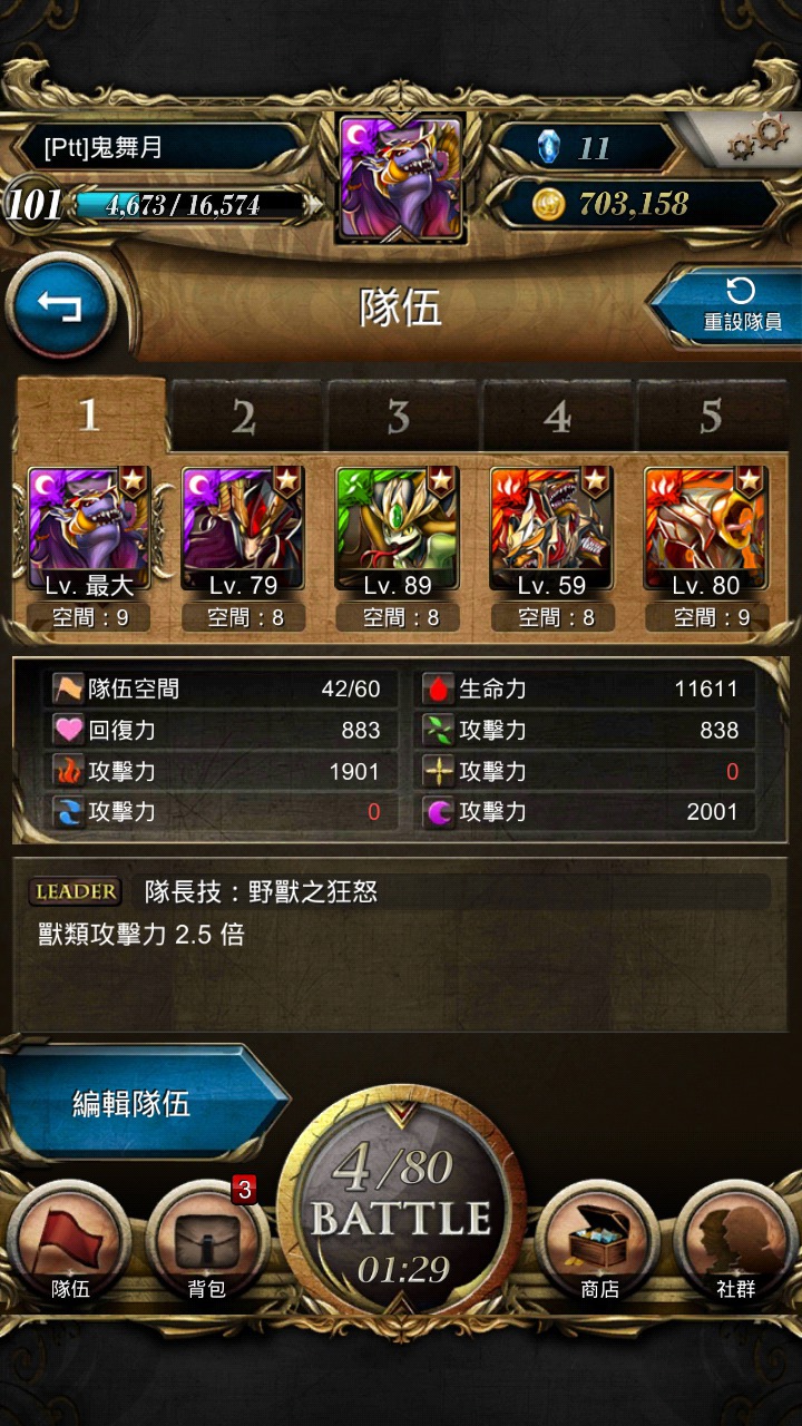 看別人的隊伍有月狼好羨慕啊!!!可惜太晚玩無緣...