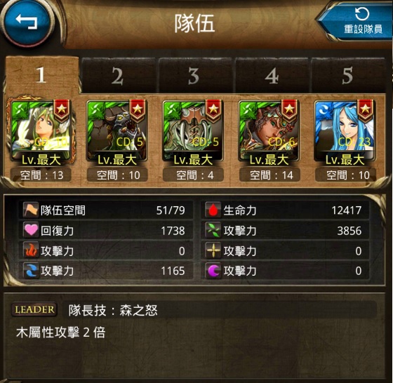 隊員1: 5★ 木異界-拜亞基 LV70 CD5