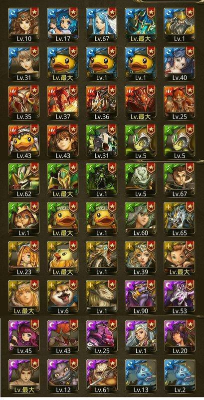 5★: LV62美杜莎 LV50千年鴨 LV31木防龍 LV 1青龍使