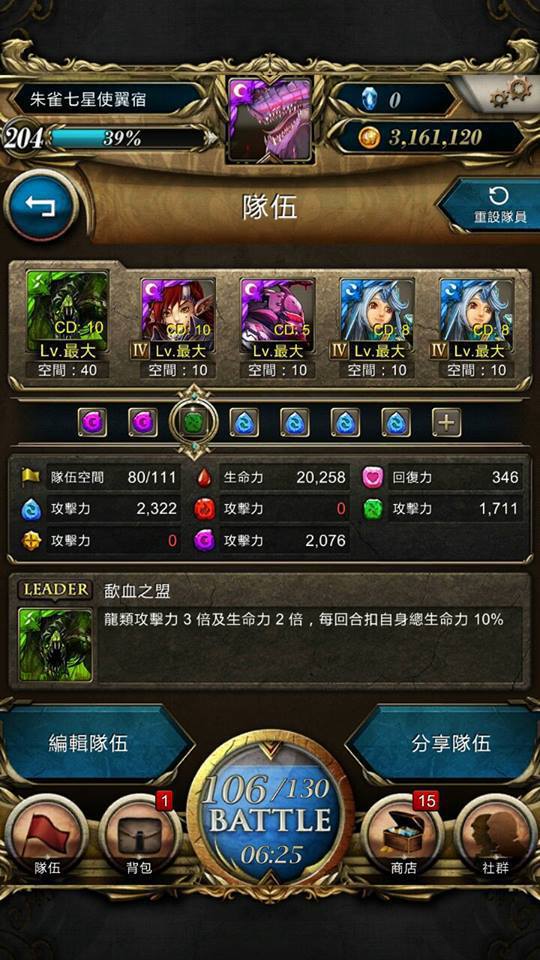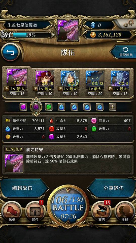 最後是擺黃衣教主進去才通關的XD 全符石轉強化好方便!!!