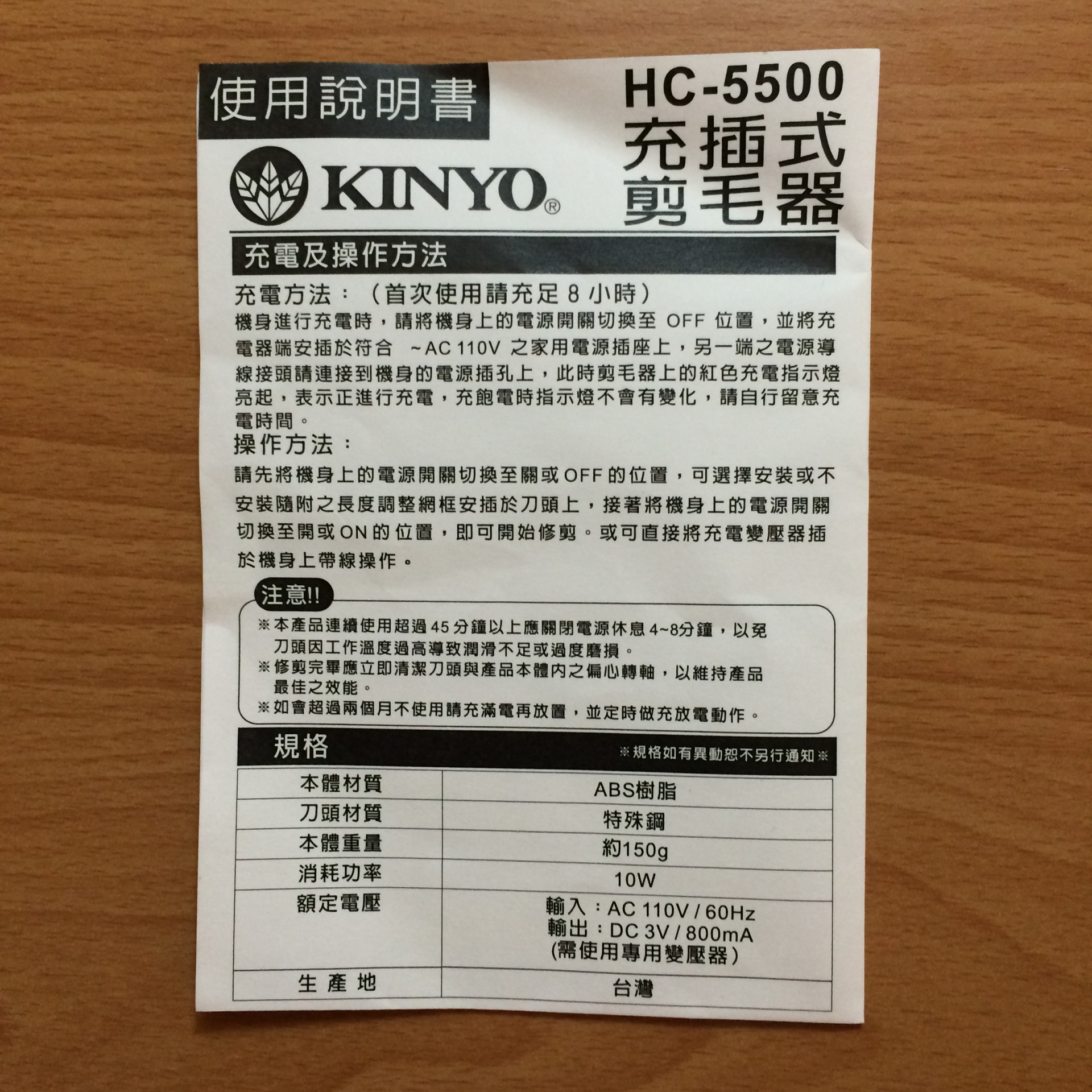 物品名稱:KINYO台灣寵物電剪(HC-5500)