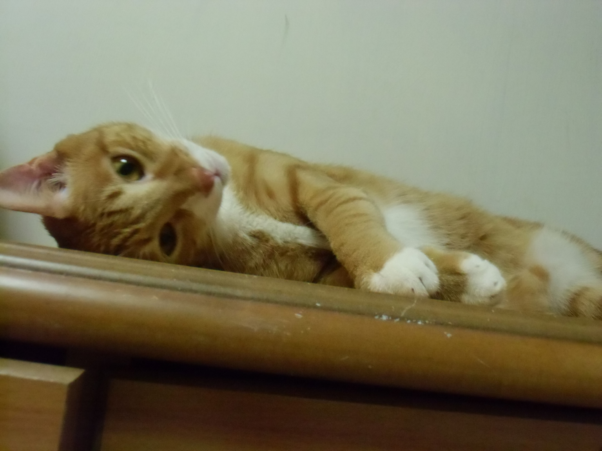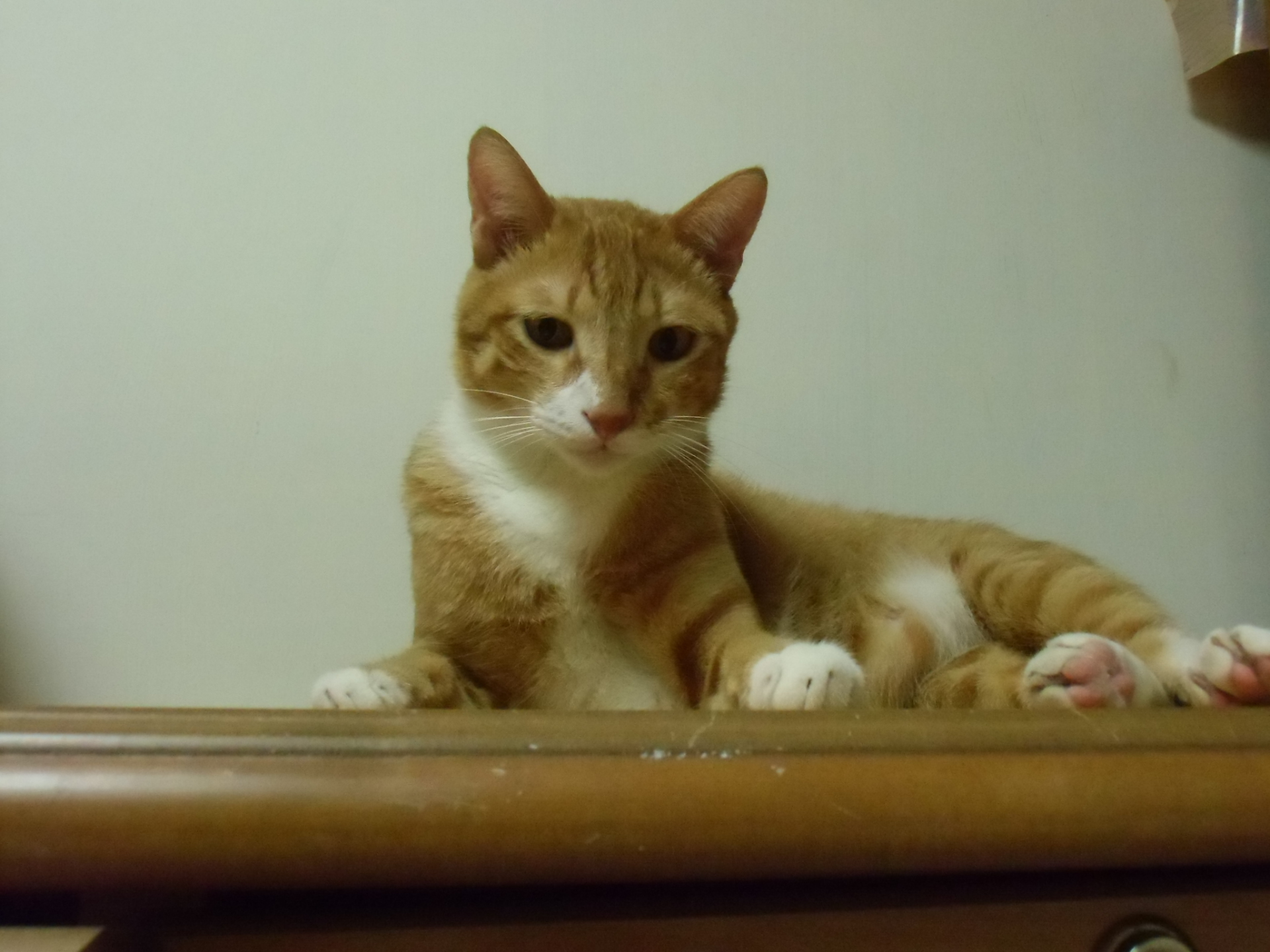 貓咪花色及特徵:橘子貓很怕生,有植晶片都餵乾飼料,喜歡吃蘋果跟魚香絲之類