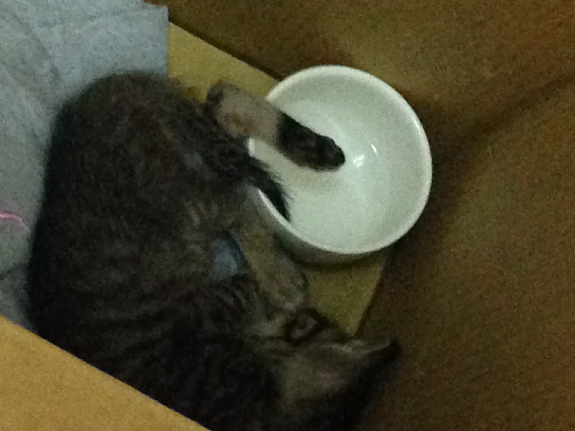 先在箱子裡面放毛巾跟水,但小貓不喝水