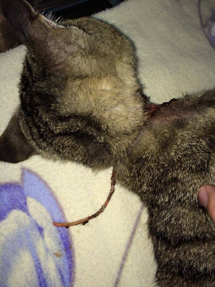 不幸中的大幸...發現的早還沒傷及氣管但還是要進行縫合