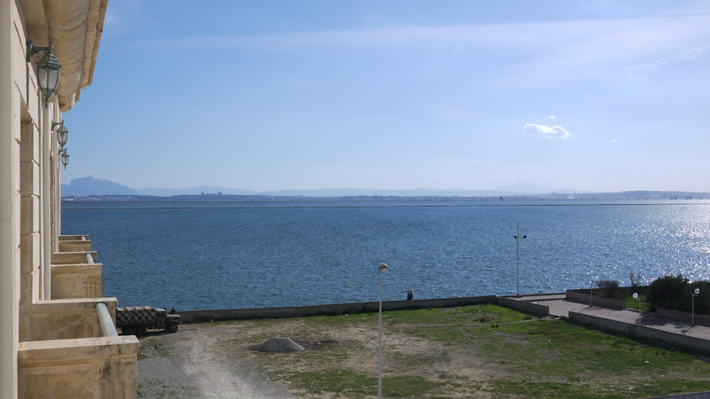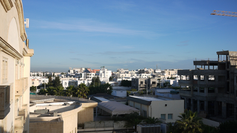 抵達突尼西亞的首都突尼斯是在一個陽光燦爛的午後,出了機場隨即被安排入住到一間靠近湖邊的旅館,此湖在突尼斯是一般民眾常去的休閒景點,旅館本身只有一棟建築體,除了硬體設備稍稍陳舊了些,整體狀況其實也不差,一開始,我與同事被安排在三樓面外邊,可以看到湖景的兩個相鄰房間。