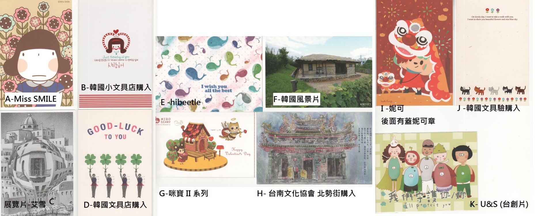 我會附上郵票及自己標號在明信片角落