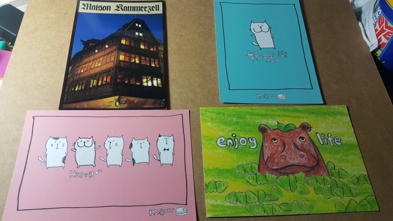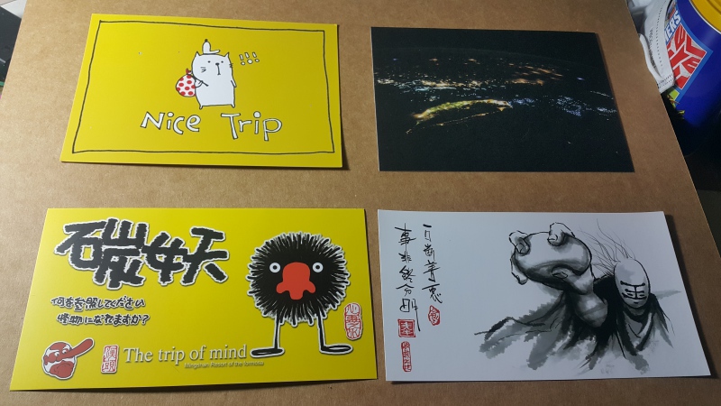 總共有四份,每份裡面有三張片都已經貼好郵票
